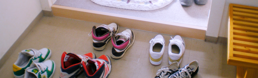 さくら塾では、靴をぬいでから教室に上がります。生徒たちはスリッパも使いません。自習やテスト前などは、かなりの時間を塾で過ごすことも多いのですが、家のようにソファーや床の上でくつろいで休憩することができます。